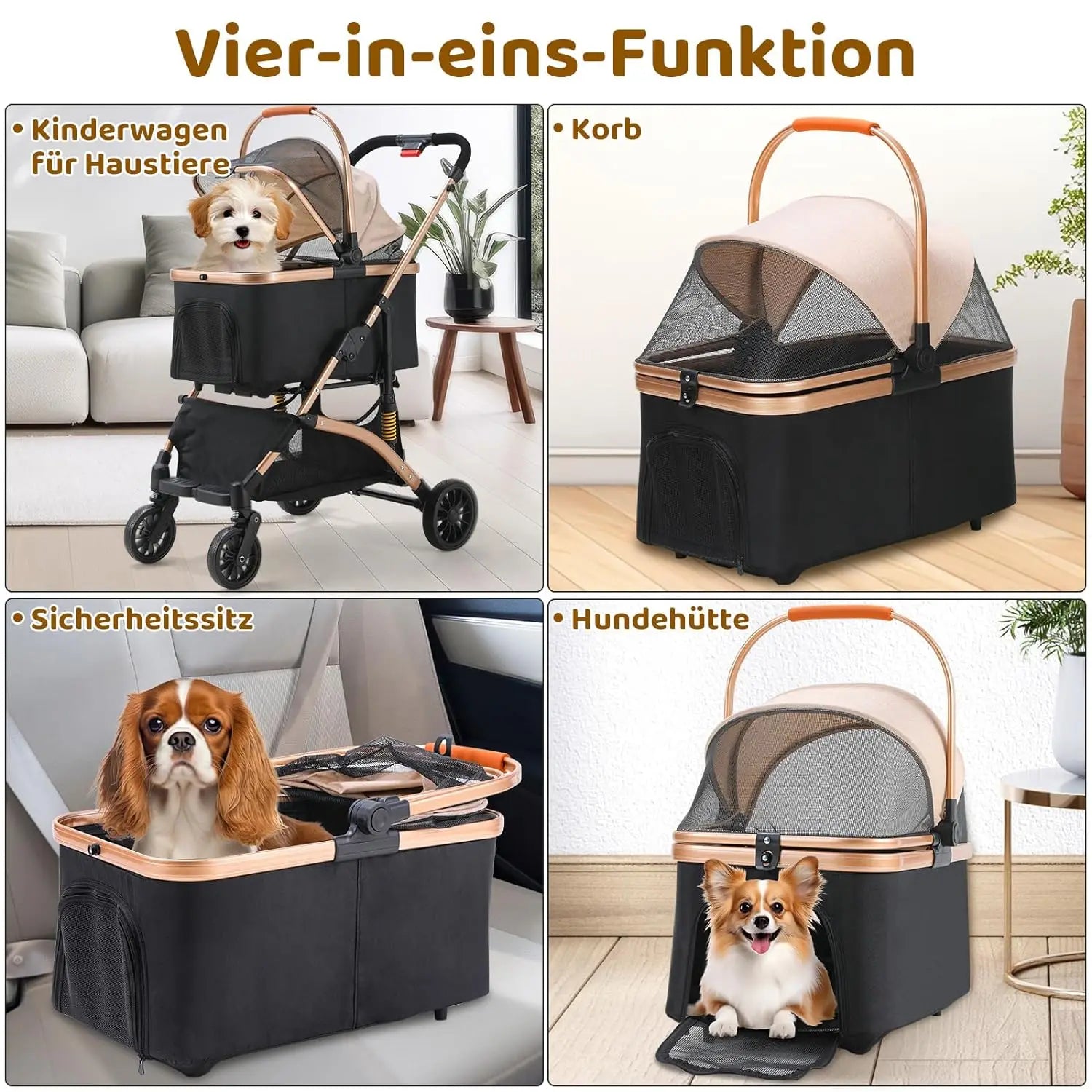 Dog Buggy 2 in 1 Stroller Dog Box Transport Foldable Cat Stroller, 360° Wear-resistant Rubber Wheels, with Storage Basket